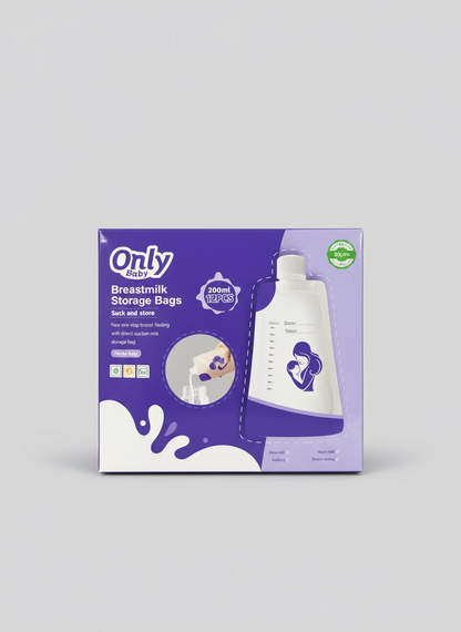 Las bolsas almacenadoras de leche materna Only Baby son prácticas, seguras y fáciles de usar. Cada bolsa tiene capacidad para 200 ml, incluye 12 unidades y cuenta con cierre hermético antifugas, ideal para conservar la leche en perfectas condiciones.