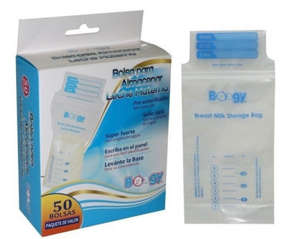 Las bolsas para almacenar leche materna Boogy son ideales para realizar sus bancos de leche materna, incluso podrá utilizarlas cuando comience su bebé la alimentación complementaria, almacenando papillas, compotas, etc. Con espacio para marcar el nombre, fecha y hora de almacenamiento. Capacidad de 6 onzas de almacenamiento. Higiénicas, Pre-esterilizadas, libres de BPA