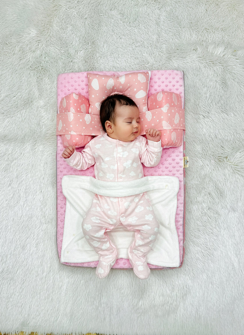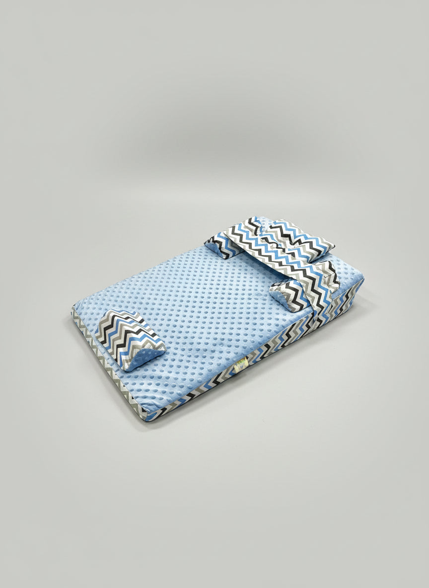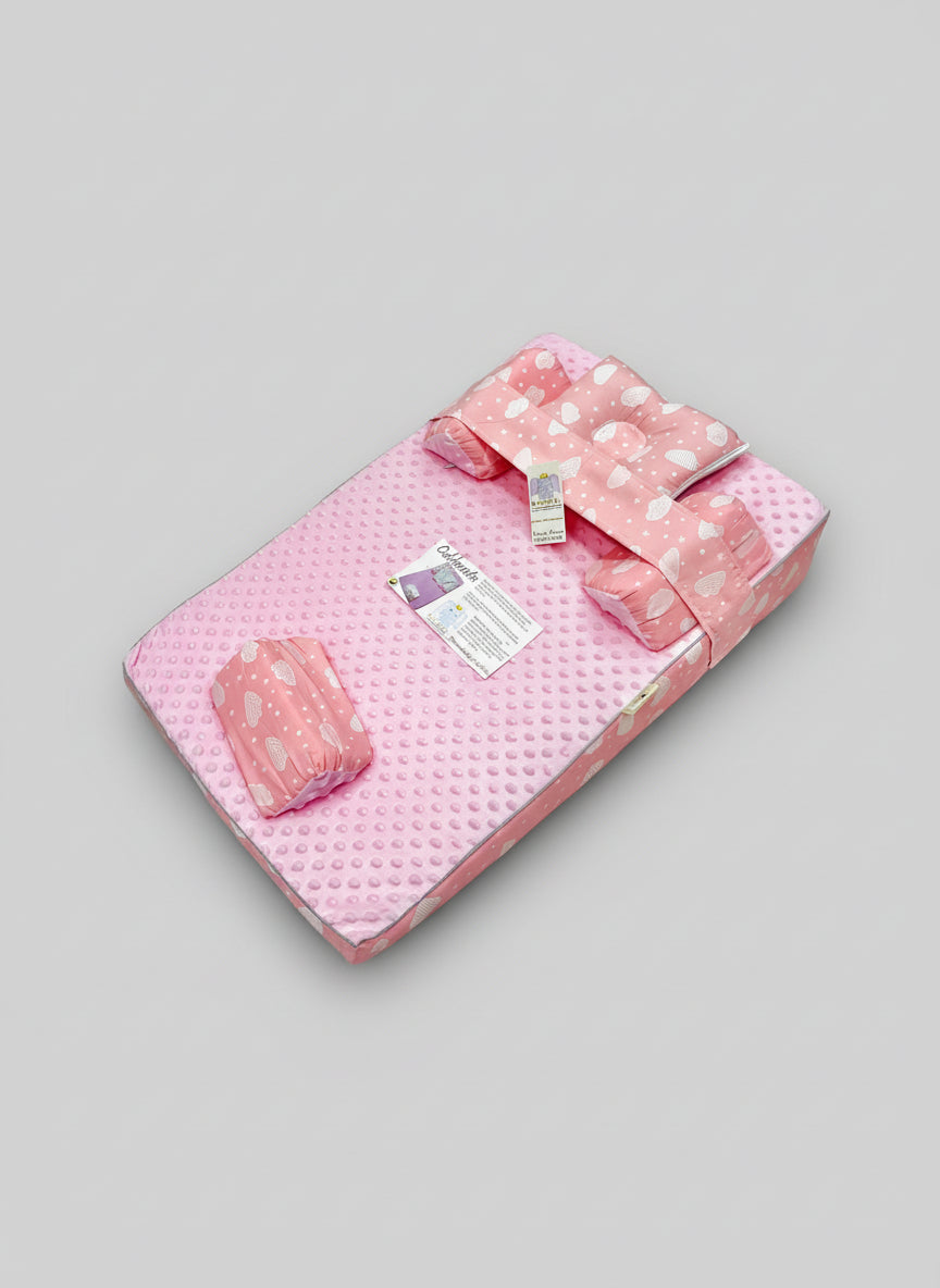 Este colchón portátil ofrece una superficie cómoda y segura para que tu bebé descanse o juegue en cualquier lugar. Su diseño acolchado con textura suave brinda soporte y confort, mientras que el cojín incluido favorece una postura relajada. Es liviano, fácil de doblar y transportar, ideal para el hogar o para viajes.