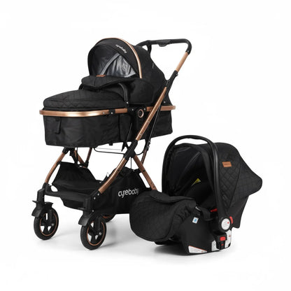 Su diseño elegante y moderno se combina con una estructura resistente, ruedas estables y un sistema de manejo suave que facilita el día a día. El moisés acolchado brinda un espacio cómodo para el descanso del bebé, mientras que la silla para auto ofrece practicidad y seguridad en los viajes.