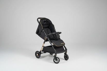 Incluye capota protectora, perfecta para resguardar al bebé del sol y el viento, y una canasta inferior espaciosa, ideal para llevar pañalera, compras o accesorios esenciales. Su estructura es resistente, fácil de manejar y pensada para el uso diario.