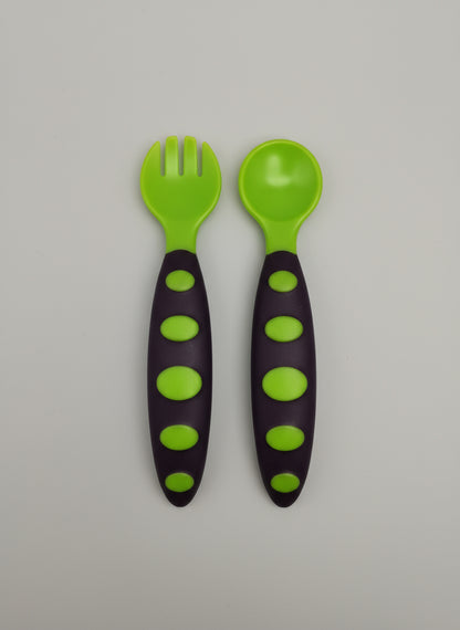 Facilita la transición de tu bebé a la autoalimentación con este divertido y seguro Set de Cubiertos de Aprendizaje (Cuchara y Tenedor) de Liyibao. Diseñados con mangos gruesos y ergonómicos, son perfectos para el agarre de las manos pequeñas, fomentando la motricidad fina y la independencia a la hora de comer. Las puntas de los cubiertos son suaves, fabricadas en plástico o silicona de grado alimenticio y libres de BPA, lo que garantiza una experiencia segura y cómoda para las encías de tu bebé. El diseño con colores vibrantes y puntos de agarre lo convierte en un favorito inmediato.