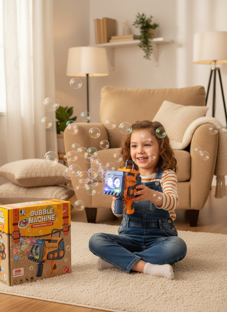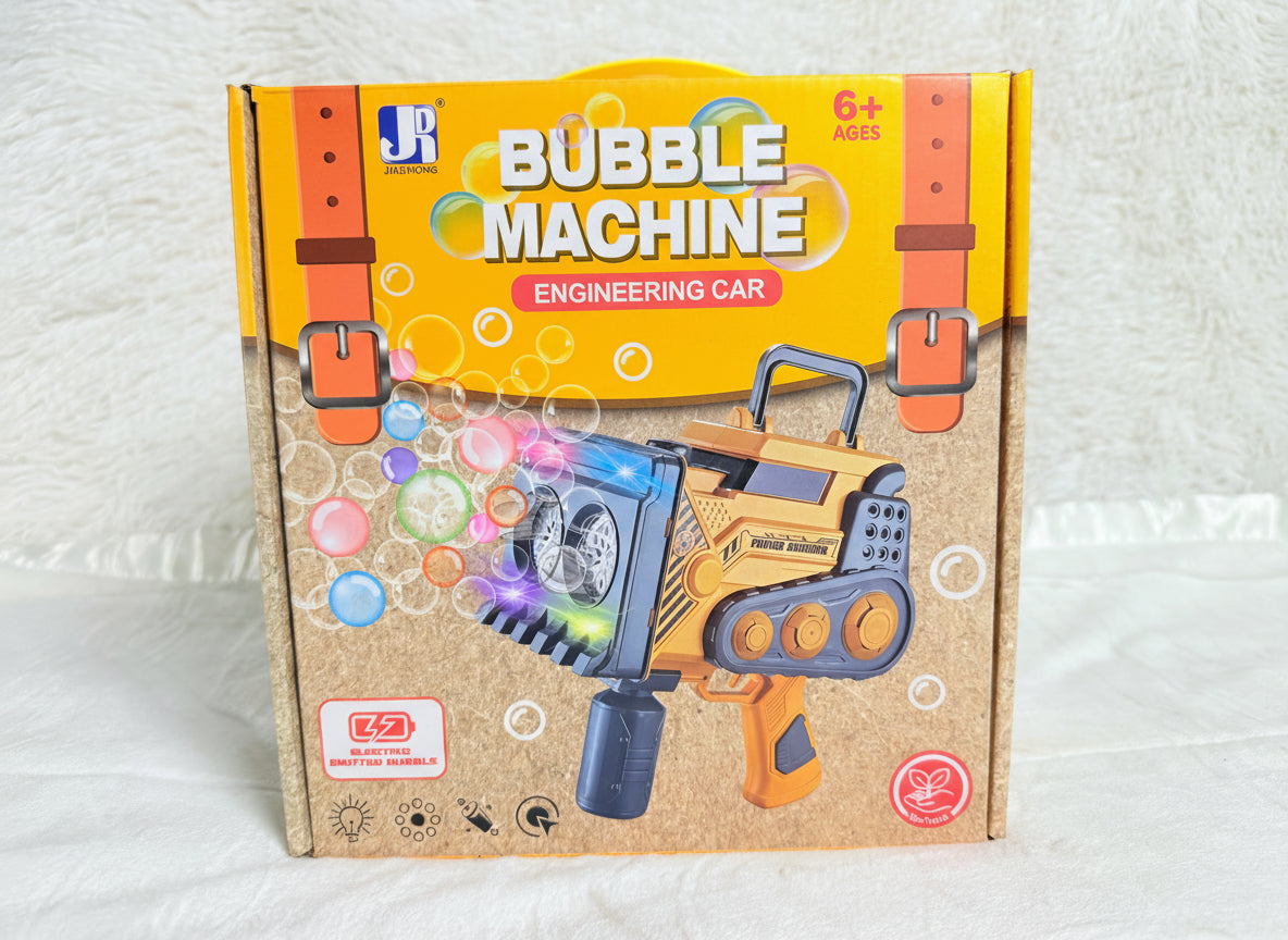 ¡Convierte la hora del juego en una fiesta de burbujas! Esta divertida Máquina de Burbujas con diseño de boombox crea automáticamente cientos de pompas mientras reproduce melodías alegres. Es el juguete perfecto para el aire libre, estimulando la visión y la coordinación de tu pequeño. Fabricado en plástico ABS no tóxico y resistente, es seguro y fácil de usar, solo añade la solución de burbujas y presiona un botón. Lleva un asa para que los niños puedan transportarlo a cualquier parte.