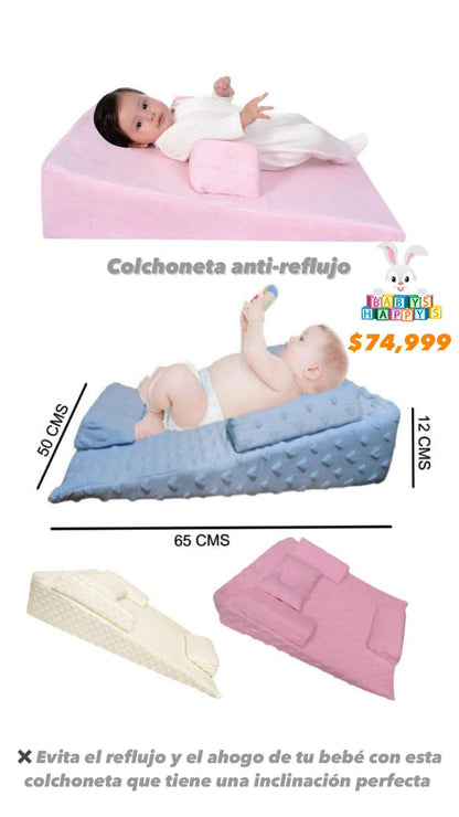 - Este producto fue diseñado para que el bebé duerma cómodamente, evitando los riesgos normales del reflujo.
