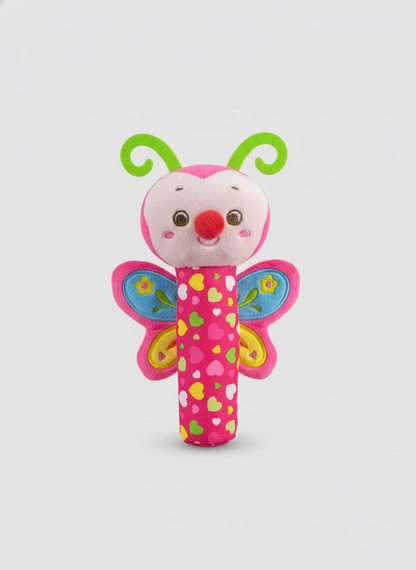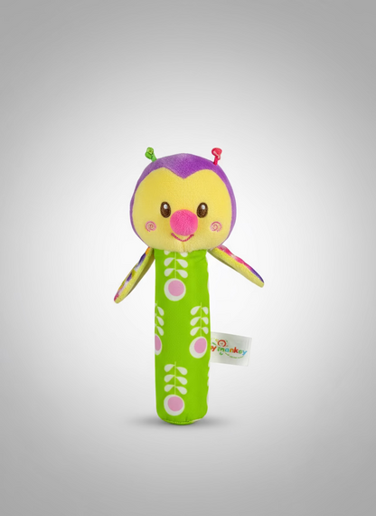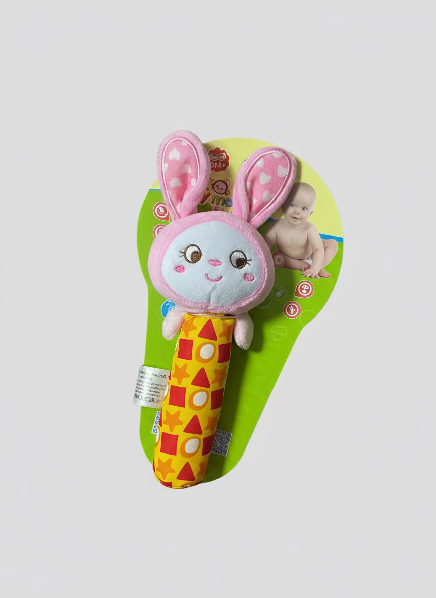 Un juguete esencial para la estimulación temprana de tu bebé. Este sonajero con diseño tipo bombón está fabricado con tela de poliéster de felpa suave y relleno antialérgico, perfecto para las pequeñas manos. Su forma alargada y fácil de agarrar, junto con su suave sonido de sonajero y sus colores vibrantes, estimula los sentidos auditivo y visual, ayudando al desarrollo de la coordinación mano-ojo. Es ligero y seguro para abrazar y morder.