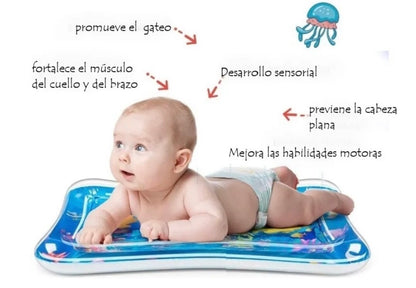El bebé presiona la alfombra de agua y mueve a los peces para promover la coordinación ojo-mano.