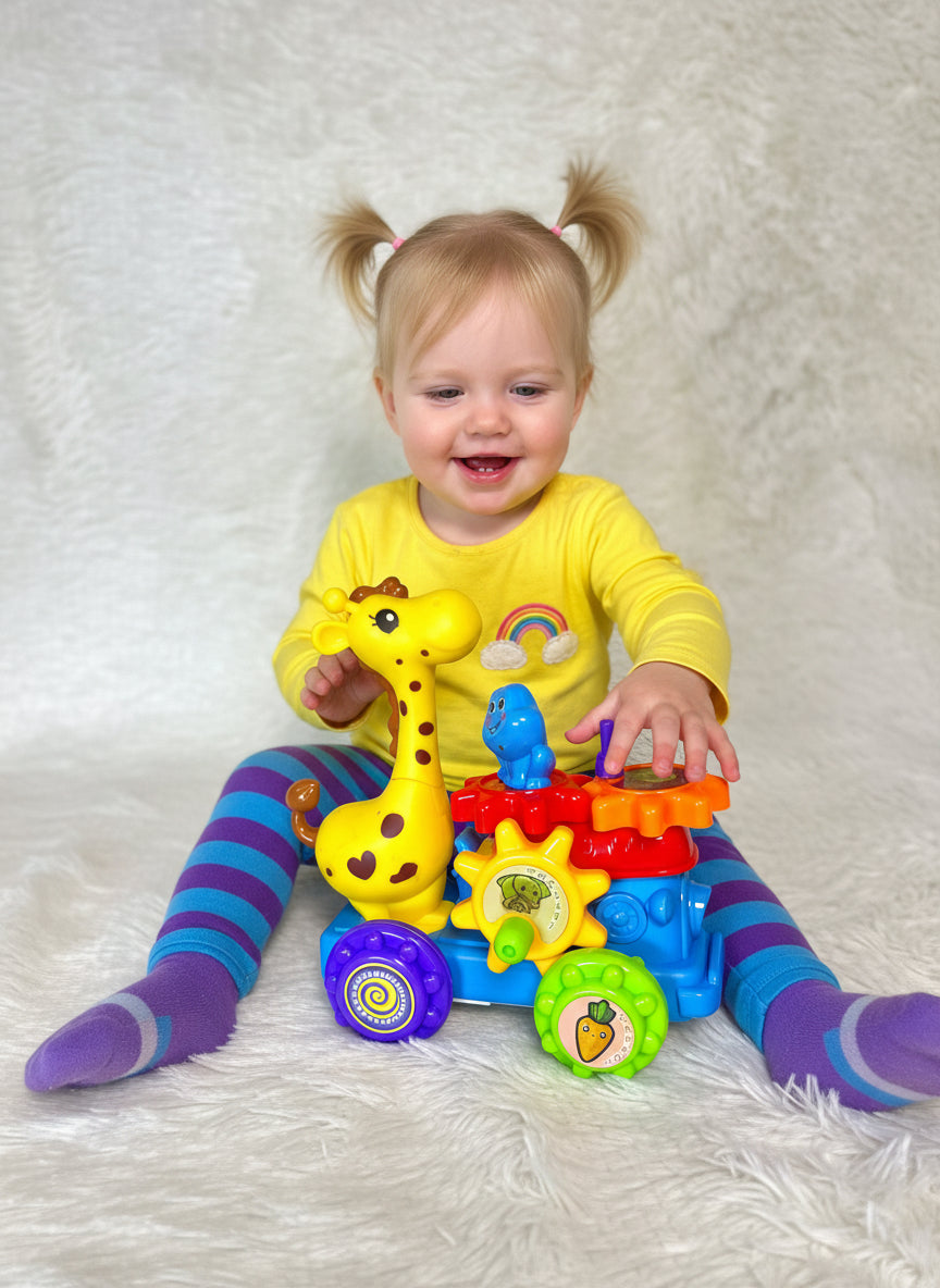 Este adorable Tren de Arrastre con Jirafa es un centro de diversión y aprendizaje que fomenta la curiosidad y la motricidad fina. Al arrastrarlo, el tren activa engranajes giratorios y melodías (o luces, si aplica) que enseñan a los niños sobre la causa y efecto de forma lúdica. Es ideal para la etapa de caminar, ya que anima el movimiento y la coordinación motora gruesa. Fabricado en plástico resistente y no tóxico, es un juguete didáctico duradero y seguro para las manos pequeñas.
